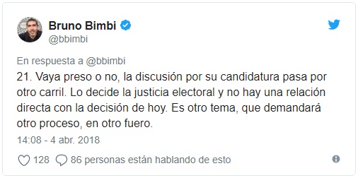 O partido argumenta que a decisão de hoje visa a impedir uma candidatura de Lula nas eleições deste ano. «O povo brasileiro tem o direito de votar em Lula, o candidato da esperança. O PT defenderá esta candidatura nas ruas e em todas as instâncias, até as últimas consequências».