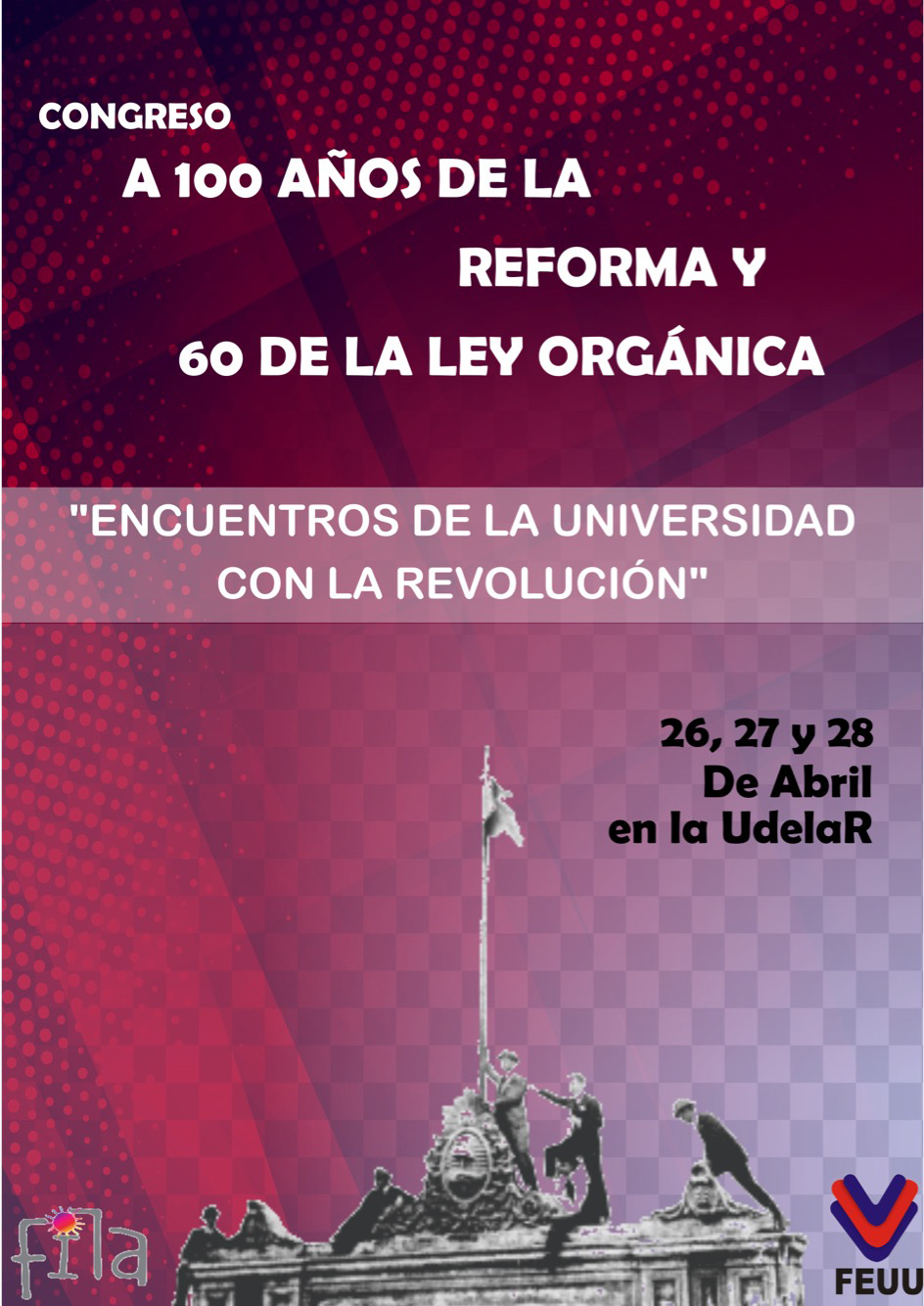 Es por esto que desde Federación de Estudiantes Universitarios del Uruguay la Fundación por la integración Latinoamericana orgnizan el foro “A 100 AÑOS DE LA REFORMA y A 60 DE LA LEY ORGÁNICA: Encuentros de la Universidad con la Revolución”, en l sede de la Universidad de la República, los días 26, 27 y 28 de abril en Montevideo, Uruguay.