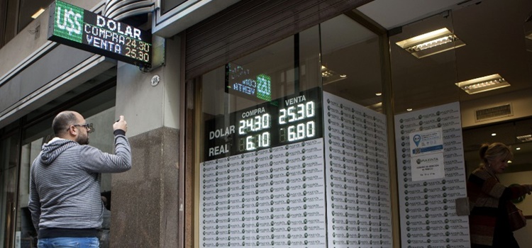 Las pizarras de las casas de cambio cerraron en promedio el lunes con un tipo de cambio de 25,52 pesos por dólar contra 23,93 del viernes.
