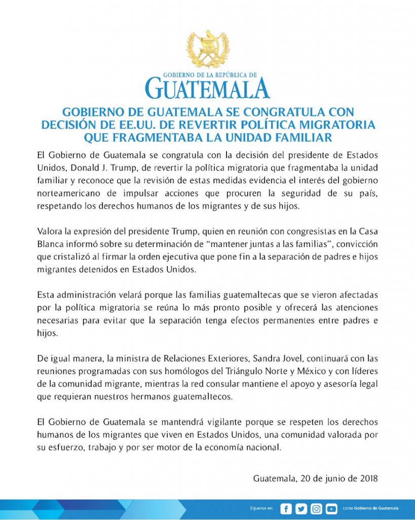 Comunicado de prensa del Gobierno de Guatemala