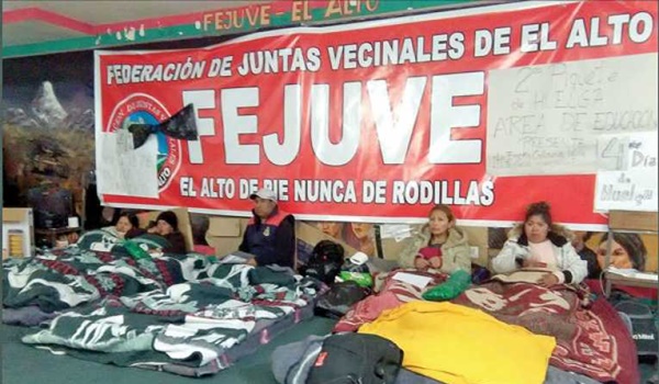 La Federación de Juntas Vecinales de El Alto convocó a un paro cívico para el lunes y martes en apoyo a las demandas de la Universidad Pública de El Alto (UPEA) que son la modificación de la Ley de Coparticipación Tributaria y el esclarecimiento de la muerte del universitario Jonathan Quispe.