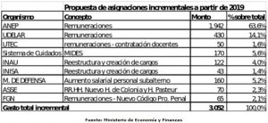 La propuesta de asignaciones incrementales a partir de 2019 (en millones de pesos a valores de 2018) se presenta en el siguiente cuadro.