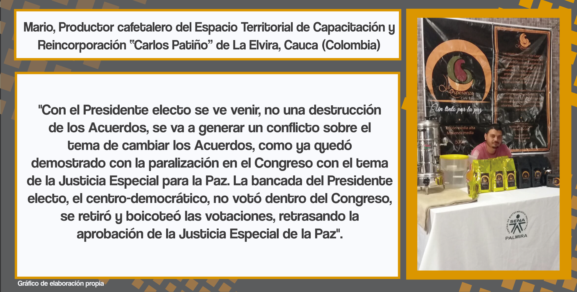 Desde el ETCR “Carlos Patiño”, ubicado en la zona del Cauca, Nelson, miembro de la cooperativa cafetalera “La Esperanza” narra la experiencia que transitan tras un acuerdo con la empresa italiana Illy Café, y analiza cómo impactará el resultado de las últimas elecciones en el construcción del proceso de paz.
