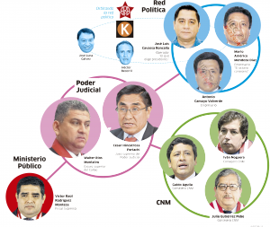 – Alrededor de estas dos redes gravitan otros personajes. Empresarios y políticos ansiosos de controlar las decisiones de los jueces. Por allí aparecen los nombres de Héctor Becerril y la enigmática ‘señora K’ de Fuerza Popular y Mauricio Mulder del Apra. Frente a ellos, magistrados ansiosos de respaldo político, para legitimar sus acciones.