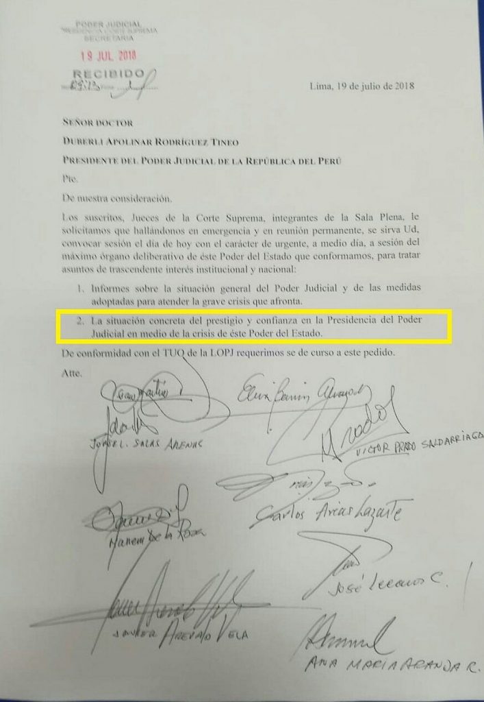 Ya por ese entonces, diversos jueces supremos habían mostrado sus reparos con la continuidad de Rodríguez al frente del Poder Judicial.