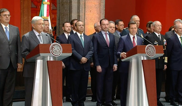 Por su parte el presidente electo, AMLO celebró «la transición institucional con respeto y en coordinación plena, es una transición institucional por que surge de un proceso electoral democrático, se está cumpliendo el mandado de nuestro pueblo, el soberano, el que mande, de México».