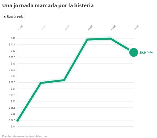 En un clima de extrema desconfianza, el dólar tuvo el mayor salto desde 2015: se disparó 15,6% a $ 39,87