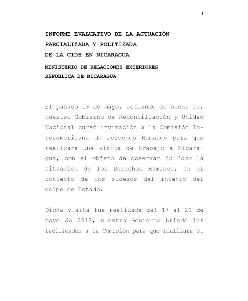 Nicaragua presenta informe evaluativo de la actuación parcializada de la CIDH