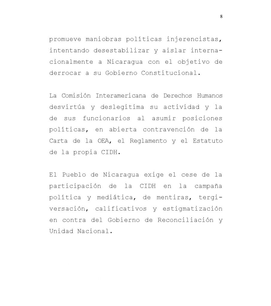 Por estas razones, “el pueblo de Nicaragua exige el cese de la participación de la CIDH”, agrega la declaración oficial.