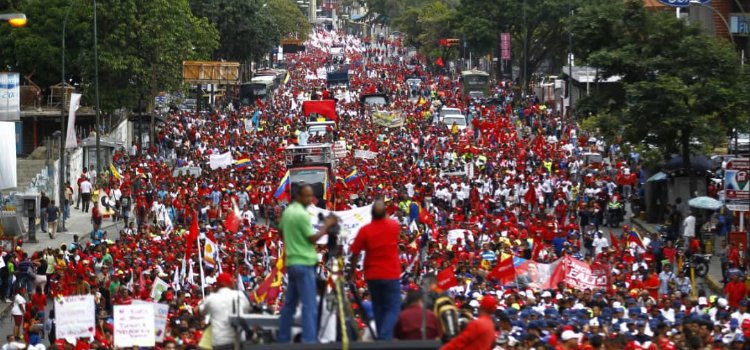 La gran marcha convocada bajo el lema «La Patria Llama» y «Marcha Roja por la Paz» caminó hasta el Parque Carabobo, en el centro de la ciudad.