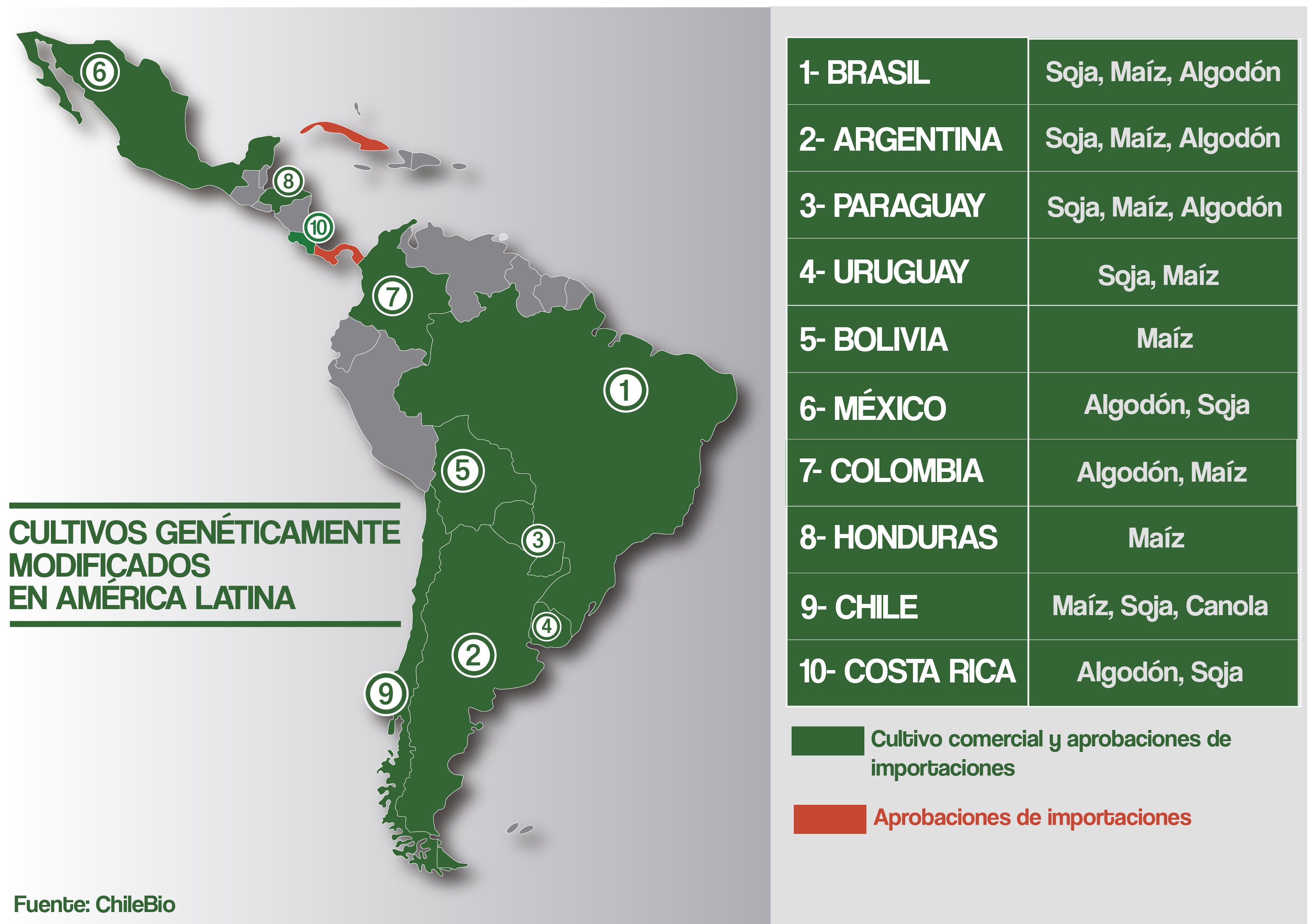 Nuestra región es la reserva cultivable más grande del mundo. Posee un 24% de las tierras productivas y sólo exporta del 11% de lo producido en las mismas. Según José Perdomo, Presidente de la Organización Gremial Internacional CropLife LatinAmerica, la próxima década aumentará el consumo de alimentos en un 55%, mientras que disminuirán el 25% las tierras productivas.