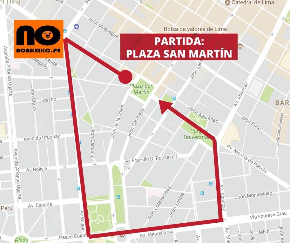 De acuerdo a información del evento, la concentración inicia a las 6 de la tarde en la Plaza San Martín y desde ahí caminarán por la avenida Nicolás de Piérola, Wilson, Grau, Abancay, otra vez Nicolas de Piérola y termina en el lugar de concentración.