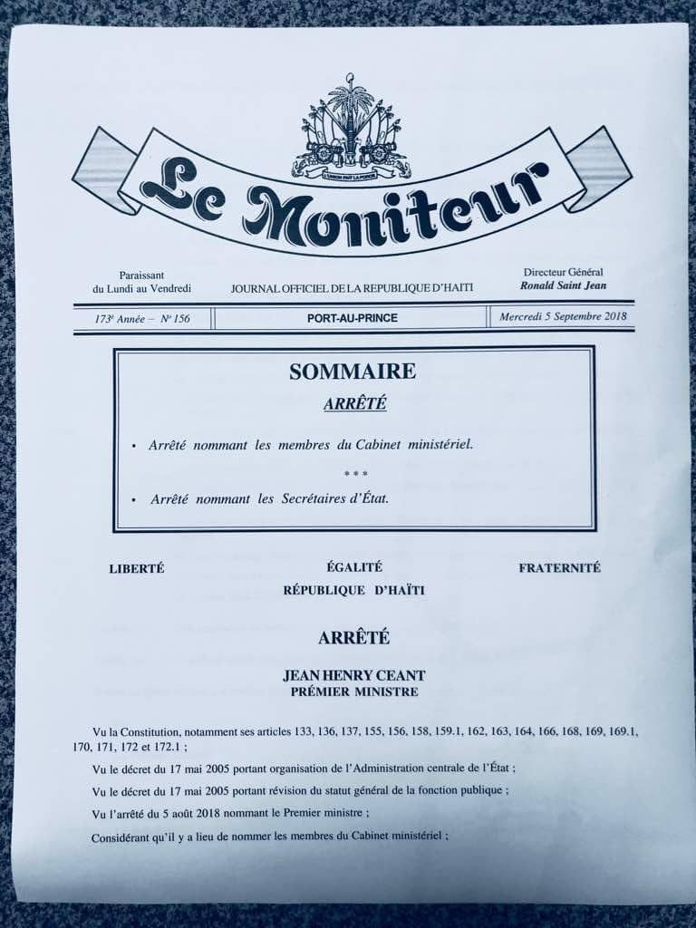 El decreto presidencial que nombra a los responsables de carteras fue publicado por el periódico oficial Le Monitor, aunque tendrá que ser ratificado por el voto favorable del Parlamento haitiano.