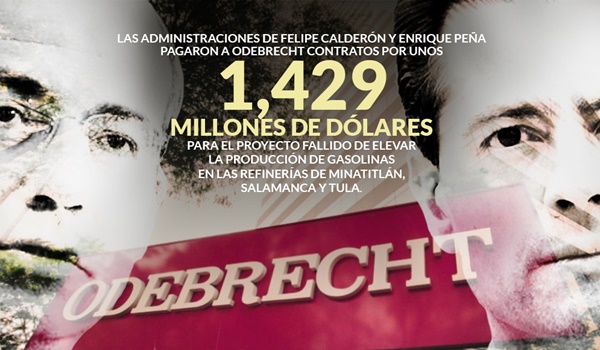Las administraciones de Calderón y Peña “pagaron a Odebrecht contratos por unos 1 mil 429 millones de dólares para el proyecto fallido de elevar la producción de gasolinas en las refinerías de Minatitlán, Salamanca y Tula. Además, cancelaron inversiones propias [de Pemex] para cederles el negocio del etileno […]. Pemex también les asignó, sin concurso de por medio, la construcción del [gasoducto Los Ramones II], de acuerdo con datos tomados de registros públicos, en contratos y en las observaciones de la ASF”, refiere La Negra Historia de Odebrecht en México, una investigación de la organización Mexicanos Contra la Corrupción y la Impunidad (MCCI).