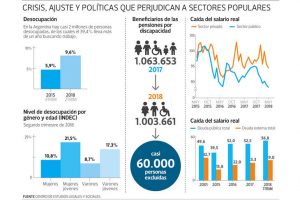 El objetivo del gobierno de llegar a “déficit cero” en 2019 con la profundización del ajuste articula otro apartado del informe. Advierte que, según las estimaciones oficiales, a fines de 2018 la inflación podría alcanzar el 42 % y la actividad económica sufrir una caída del 2,4. «Este escenario, sumado al ajuste que se profundiza con el respaldo del FMI, afectará el goce de los derechos económicos, sociales y culturales, y agravará la pobreza con mayor impacto en las mujeres y en la población joven», concluye el trabajo.