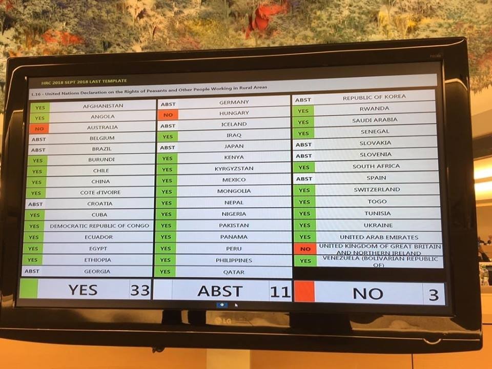 La suerte de una histórica declaración que reconoce los derechos de más de 1.000 millones de campesinos en el mundo se define en las próximas semanas en la Asamblea General de Naciones Unidas. Tras ser aprobada por el Consejo de Derechos Humanos, el máximo órgano en la materia de la ONU.