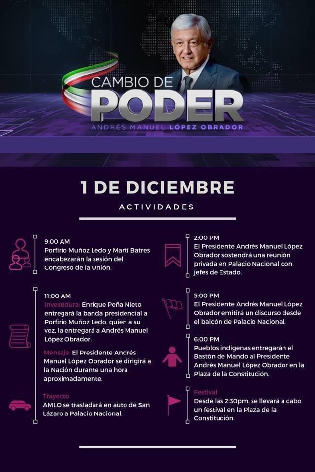 El segundo evento, del 1 de diciembre cuando AMLO sea nombrado presidente constitucional, será a las 11:00 horas.