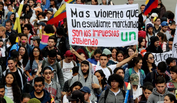 Los estudiantes, que desde hace semanas protestan, piden al Gobierno más presupuesto para las universidades públicas, pues, según cifras de expertos, la educación superior en el país tiene un déficit de 3,2 billones de pesos (unos 1.000 millones de dólares) para su funcionamiento.