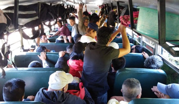 En otro bus de la ruta 259, que salió de la terminal de Sonsonate, viajan un aproximado de 40 migrantes, según el motorista, quien dijo que todos cancelaron su pasaje, ya que la unidad brinda su servicio normal, no fue contratado por la caravana.