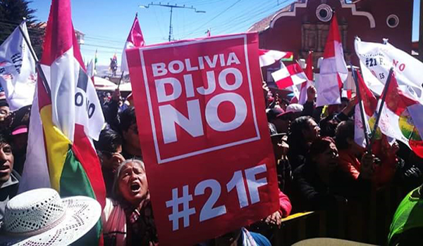 La oposición amenaza con convulsionar el país para hacer respetar el referéndum del 21 de febrero del 2016 que rechazó modificar el artículo 168 de la Constitución Política del Estado (CPE) para una segunda postulación continua del presidente y vicepresidente.