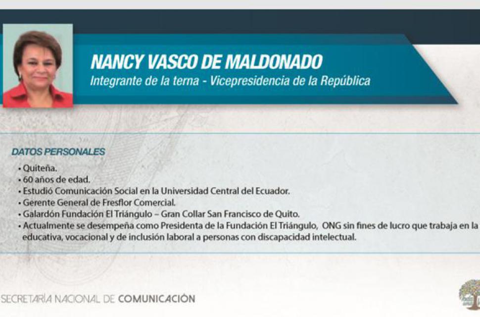 Nancy Vasco de Maldonado es la principal de Fundación El Triángulo, una ONG sin fines de lucro que ofrece oportunidades de formación educativa, vocacional y de inclusión laboral a personas con discapacidad intelectual. Esta organización está activa desde el 2 de junio de 1994.