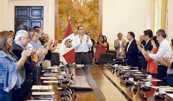 El presidente Martín Vizcarra recibió las proyecciones iniciales en Palacio junto con su gabinete ministerial.