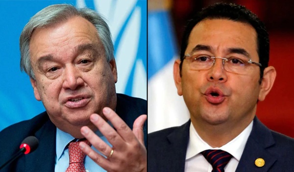 Luego de la reunión que sostuvo con la canciller, Sandra Jovel, en la que se le informó que Guatemala da por terminado el acuerdo de creación de la Comisión Internacional contra la Impunidad en Guatemala (CICIG) en las siguientes 24 horas, el secretario general de la Organización de las Naciones Unidas (ONU), António Guterres, por medio de su portavoz, se pronunció en una nota de prensa.