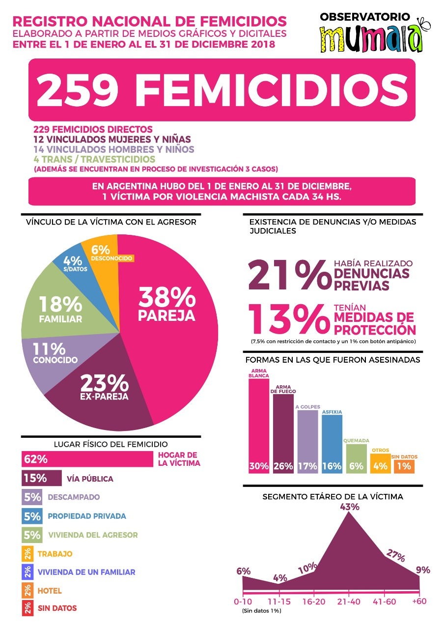 Vale recordar que durante el 2018 fueron 259 las mujeres muertas en manos de varones y el 38% de los asesinos eran pareja o ex pareja de las víctimas.