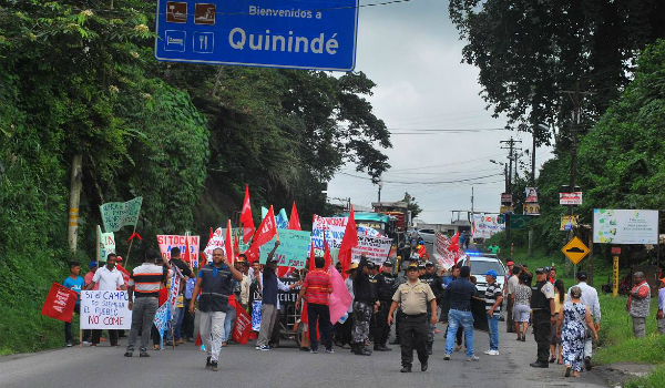 La protesta, convocada por Miryan Rodríguez, de la Asociación de Palmicultores y Agricultores 24 de Mayo, de Quinindé, se inició a las 10:00.