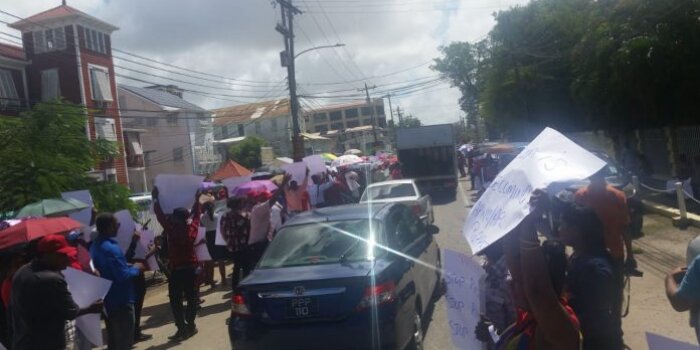 Protesters are currently in front of the Guyana Elections Commission’s Kingston Headquarters calling for the Commission to swiftly announce its preparedness for the hosting of General and Regional Elections following the successful passage of a motion of no confidence against the APNU-AFC Government.