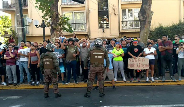 También, el alcalde de Recoleta en la ciudad de Santiago, Daniel Jadue rechazó las consignas fascistas de venezolanos y expresó: “estos son los partidarios del amigo golpista de Sebastián Piñera”.
