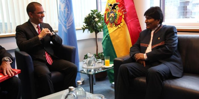 El canciller de la República Bolivariana de Venezuela, Jorge Arreaza agradeció al presidente del Estado Plurinacional de Bolivia, Evo Morales por el apoyo otorgado al gobierno y al pueblo venezolano.
