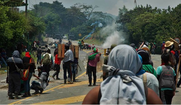 Se escuchan explosiones provenientes de la panamericana. Algunos compañeros se encuentran realizando bloqueos y la respuesta represiva por parte de la Fuerza Pública ha sido pan de cada día para los mingueros.