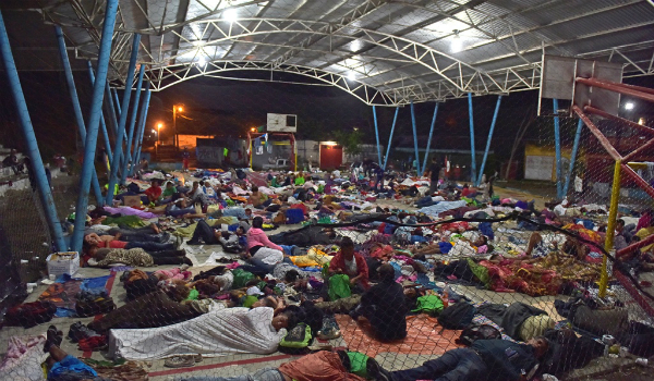 Sin acceso a los servicios de regularización, grupos de migrantes salieron en pequeñas caravanas por la costa chiapaneca. Las autoridades improvisaron un campo de refugiados en el auditorio del municipio de Mapastepec, a un centenar de kilómetros de Tapachula.
