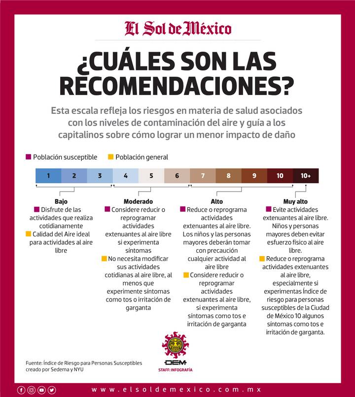 «Se está trabajando en una alerta de tal manera que a los 130 puntos, por ejemplo, si las condiciones meteorológicas nos dicen que es muy probable que lleguemos a límites superiores se establezcan una serie de medidas que eviten que lleguemos a tan altos índices», explicó la jefa de Gobierno, Claudia Sheinbaum.