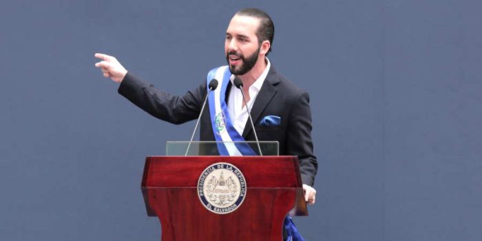 Una vez juramentado, el nuevo presidente de la República inició su discurso impregnado de mucho simbolismo y con ausencia de anuncios oficiales concretos, al punto que al finalizar sus declaraciones hizo jurar a mano alzada a los asistentes al acto que “defenderán lo conquistado el 3 de febrero”, que “cambiarán el país contra todo obstáculo, contra todo muro, contra todo individuo” y que “nadie se interpondrá entre Dios y su pueblo para cambiar a El Salvador”.
