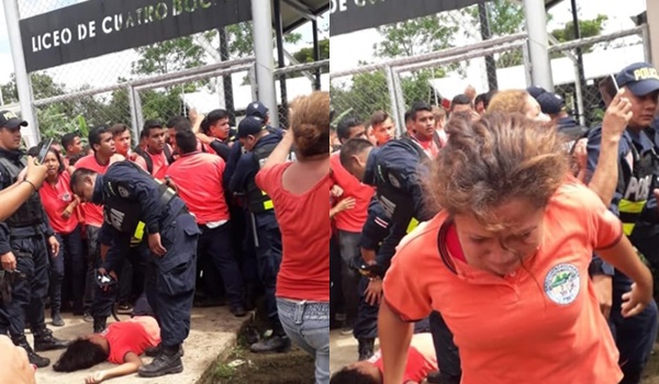 Oficiales de la Fuerza Pública reprimieron a los estudiantes del Liceo Cuatro Bocas de Upala que se manifestaban contra el ministro de Educación Pública, Edgar Mora.