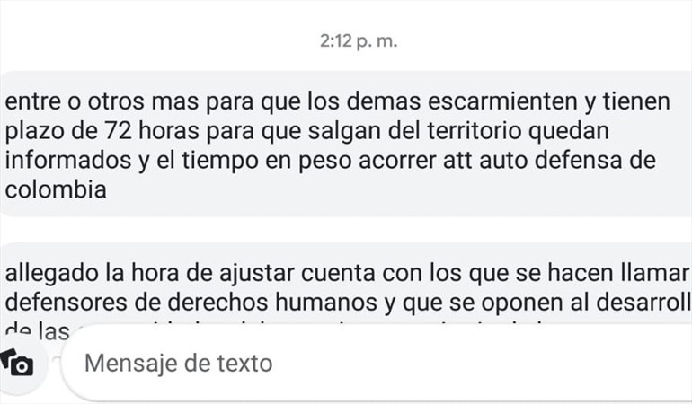 La amenaza se suma a las que semanas atrás se han proferido contra la nobel del medio ambiente Francia Márquez y Víctor Hugo Moreno, voceros de estas comunidades.