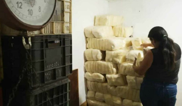 Dentro del local están apilados bultos de harina de maíz, café, azúcar, sal, jabones azules, estantes con mantequillas y natillas. Queda poco, casi todo ha sido distribuido y están a la espera del próximo despacho. El anterior fue de 14 toneladas, este será más grande y con dos productos más: jabones de baño y harina de trigo.