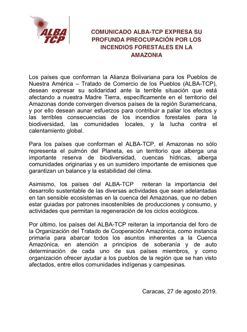 Compartir:ALBA-TCP expresa su profunda preocupación por los incendios forestales en la Amazonía VOLVER ALBAAmazoniaflashsegunda