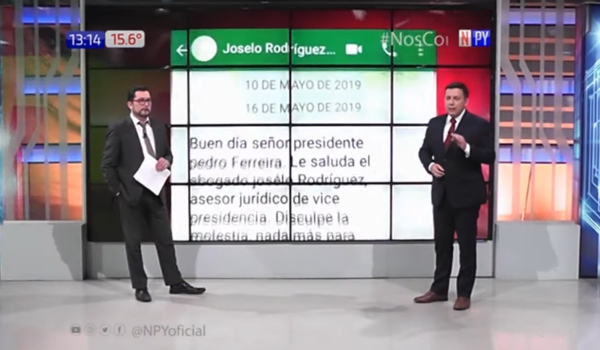 Nodal TV Paraguay: nuevos chats complican más a Velázquez y salpican a Bolsonaro – Por Noticias Paraguay En 02/08/2019 1.173 Compartir:Paraguay: nuevos chats complican más a Velázquez y salpican a Bolsonaro Noticias Paraguay VOLVER brasilHugo VelázquezJair Bolsonaroparaguay
