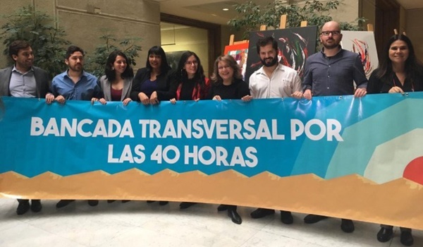 En medio de una actividad informativa que se llevó a cabo en la Plaza de la Constitución, los parlamentarios de la denominada ‘Bancada transversal por las 40 horas’ repartieron afiches con información respecto del proyecto de ley que surgió desde las diputadas comunistas Camila Vallejo y Karol Cariola.