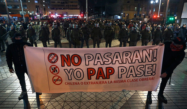 Antes de las 21:00 horas, en Alameda con el Paseo Ahumada hubo algunos incidentes entre manifestantes y Carabineros, con bloqueo de tránsito, después que se agruparan jóvenes denominados “antifascistas”.
