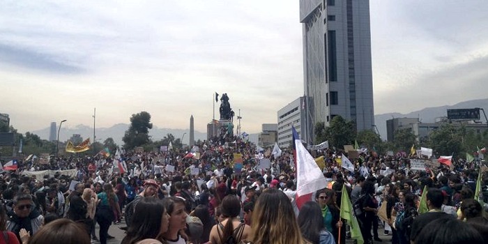 #Chile: Guanaco y Zorrillos de FFEE impiden el avance de Miles de manifestantes hacia La Moneda.