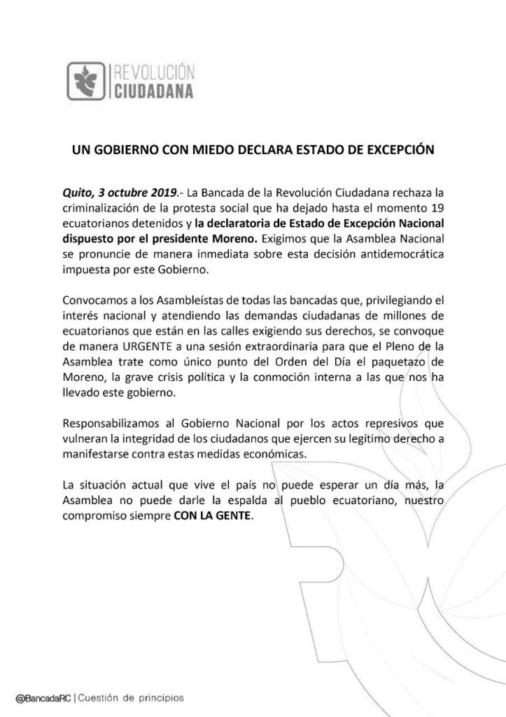 Comunicado de la bancada legislativa de Revolución Ciudadana