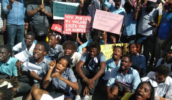 Yon lòt lekòl pou yon lòt sosyete (une autre école pour une autre société), Elèv lekòl mande Jovenel kite pouvwa a, pou yo ka al lekòl (Les élèves demandent à Jovenel Moïse de laisser le pouvoir pour qu’ils puissent se rendre à l’école),« Vive un Etat qui valorise l’équité, l’honnêteté et la compétence », lit-on sur les pancartes de revendications.