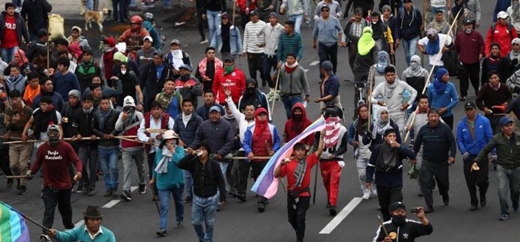 Miles de indígenas ecuatorianos llegaron la tarde de este lunes a las afueras de Quito, en una manifestación de protesta contra las medidas económicas impuestas por el Gobierno en el marco de un acuerdo crediticio con el FMI, al que consideran como un “paquetazo” contra el pueblo.