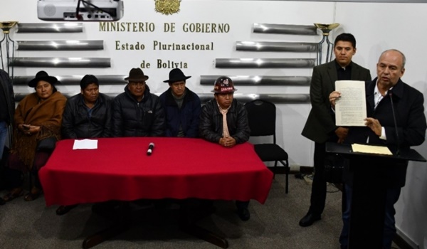 Tras varias horas de debate, el Ministerio de Gobierno, organizaciones afines al Movimiento Al Socialismo (MAS), Central Obrera Boliviana (COB) y los cinco sectores del Pacto de Unidad firmaron un convenio para pacificar el país, según ANF.
