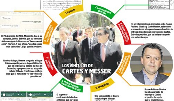 Silveira le transmitió al doleiro el pedido del político colorado de esperar hasta el 15 de agosto de 2018 para moverse. Además, Messer habría hablado a través de llamadas al teléfono del supuesto contrabandista con Cartes, según los mensajes.