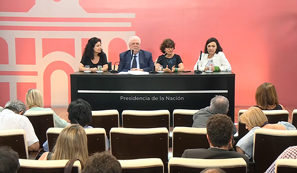 Durante la conferencia de prensa estuvo acompañado por la titular del Programa Nacional de SSyPR, Valeria Isla –quien ocupó ese cargo durante la anterior gestión de GGG–, y dos integrantes de los equipos técnicos, las médicas Mariana Romero, directora del CEDES, y Analía Mesina, quien participó en la redacción del protocolo.
